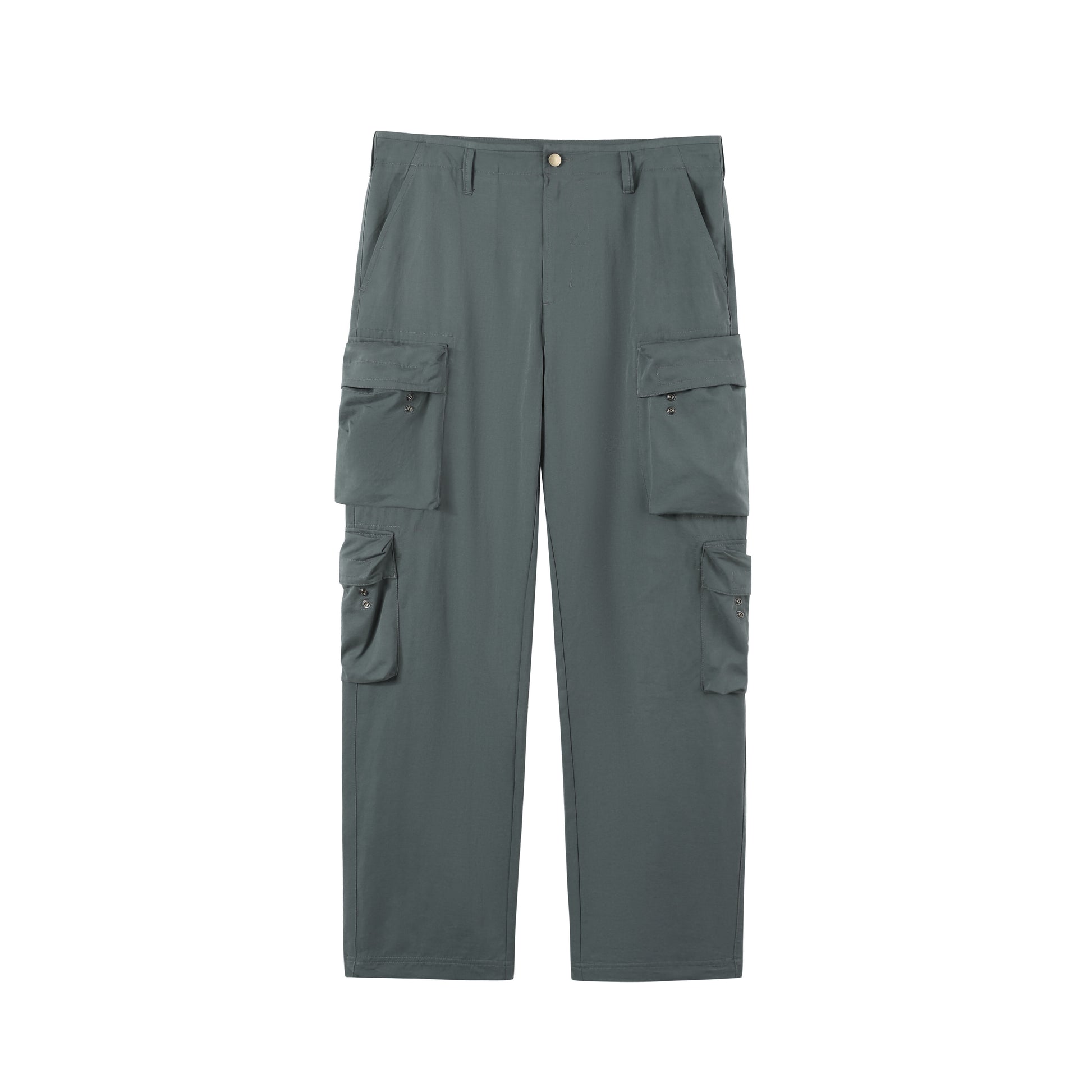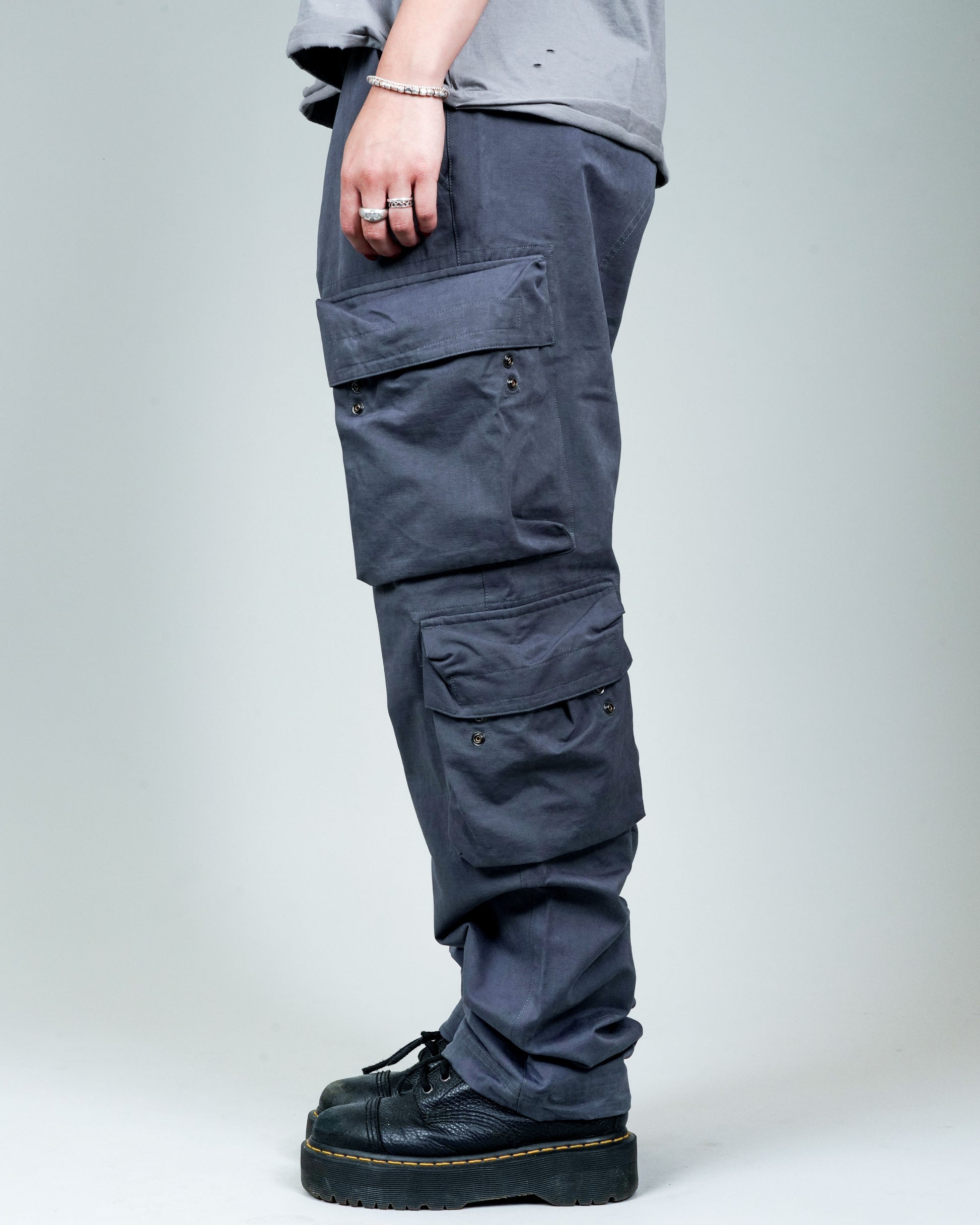 -Design features two large cargo pockets at each side, with slash side entry pockets at hip and snap button flap pockets at the rear.
