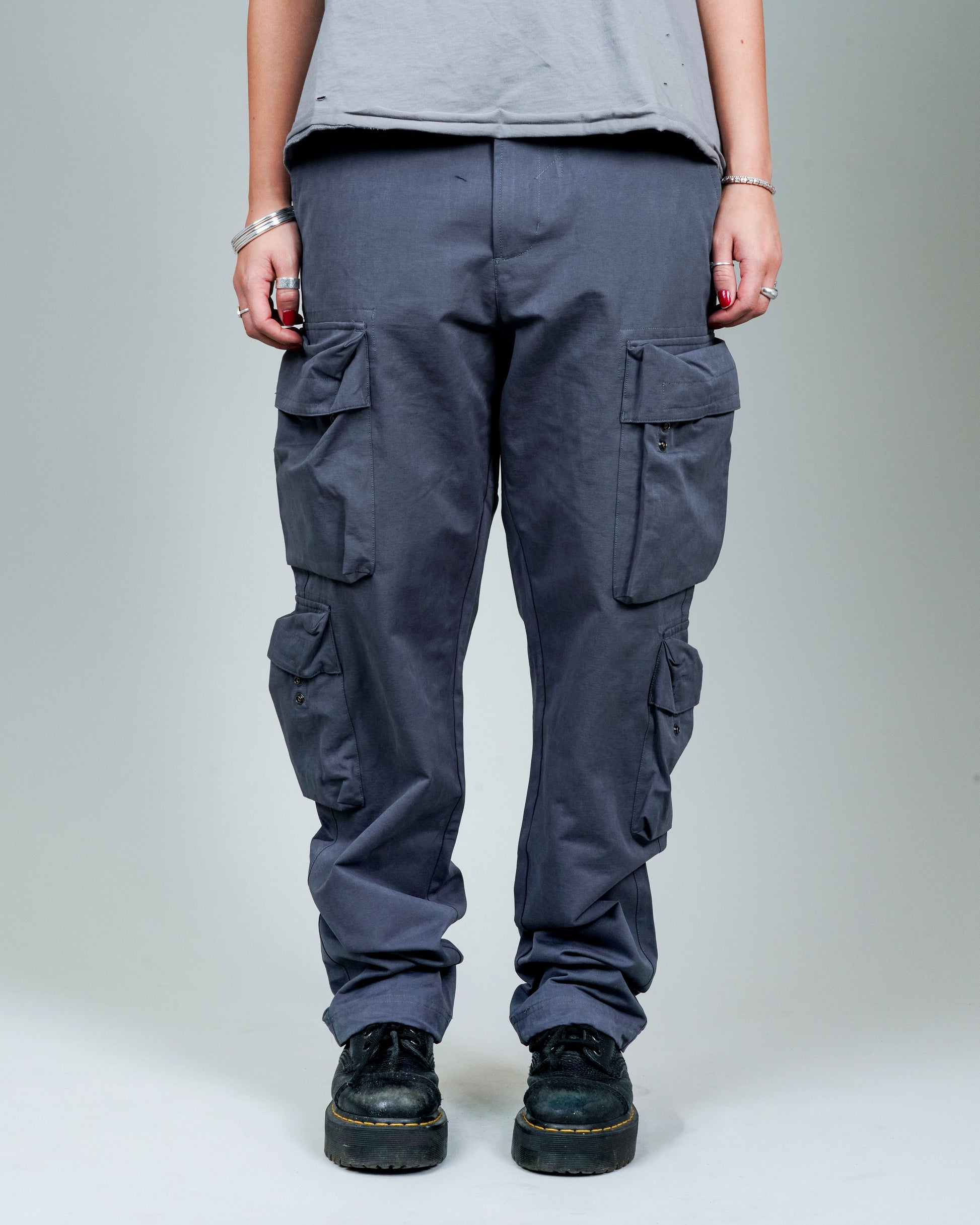 -These cargo pants feature a slim-straight fit, relaxed at the waist and thigh with a slight taper towards the ankle.