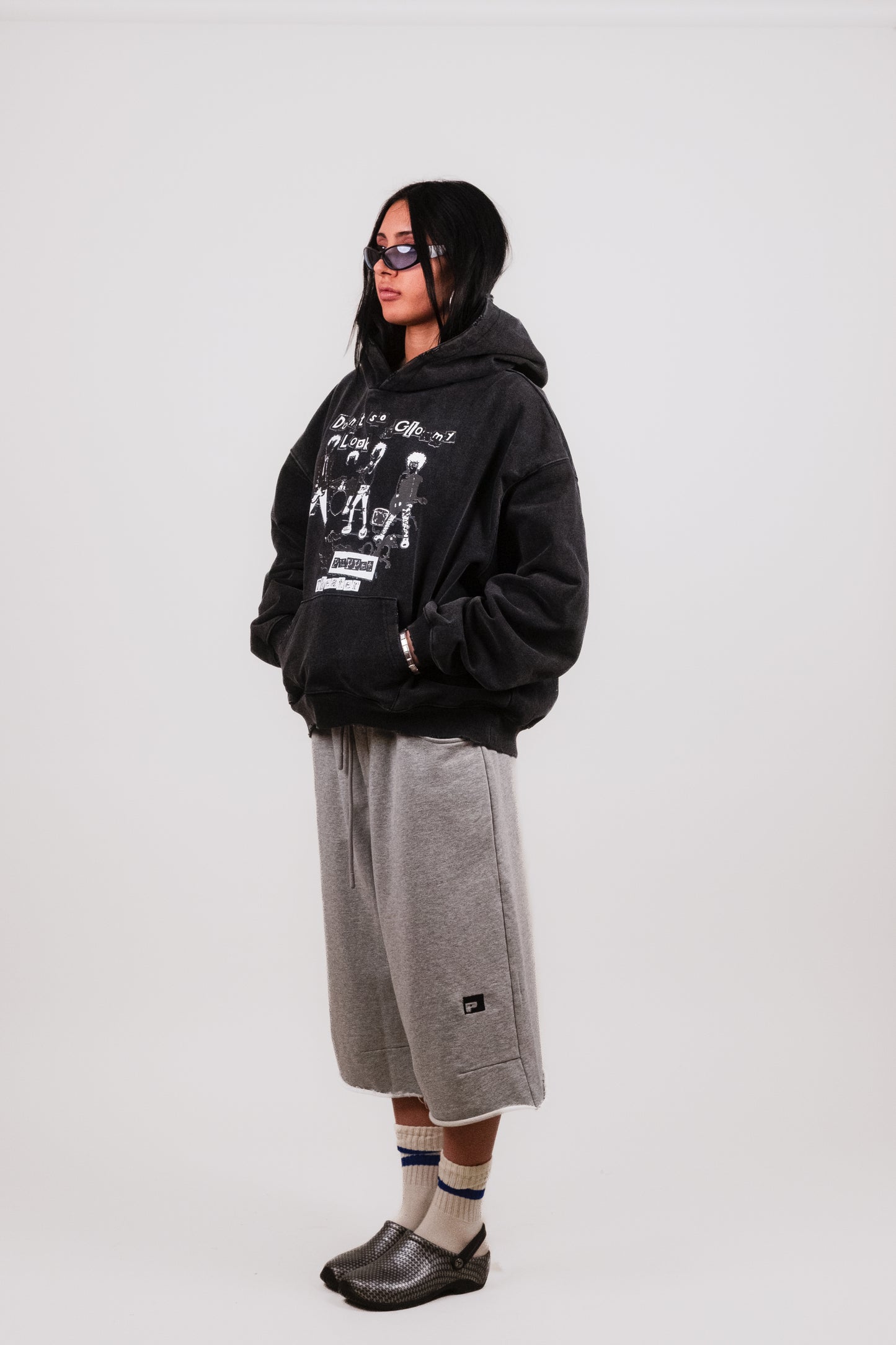 -Two pockets at waist, single basting stitch tacked pocket at rear