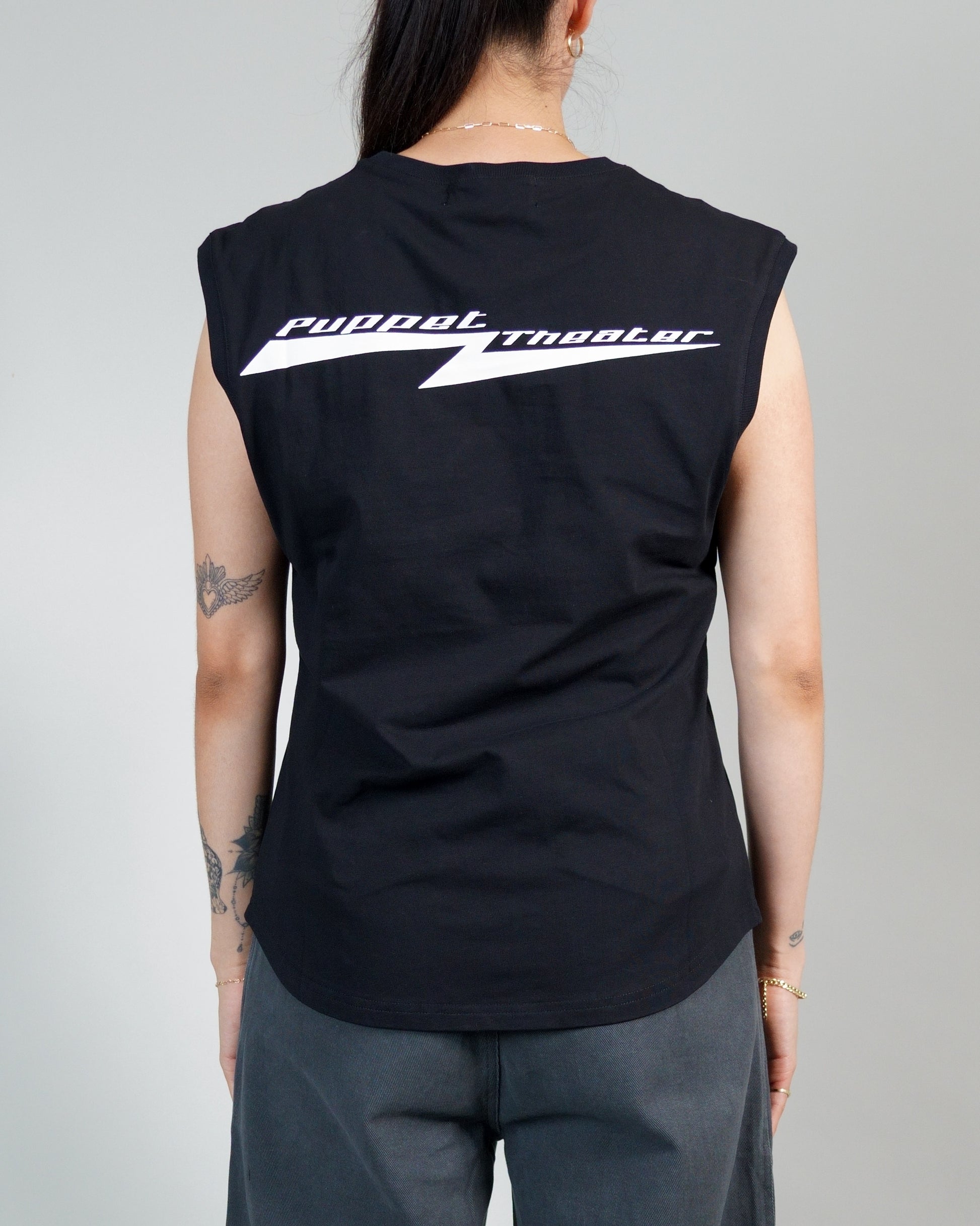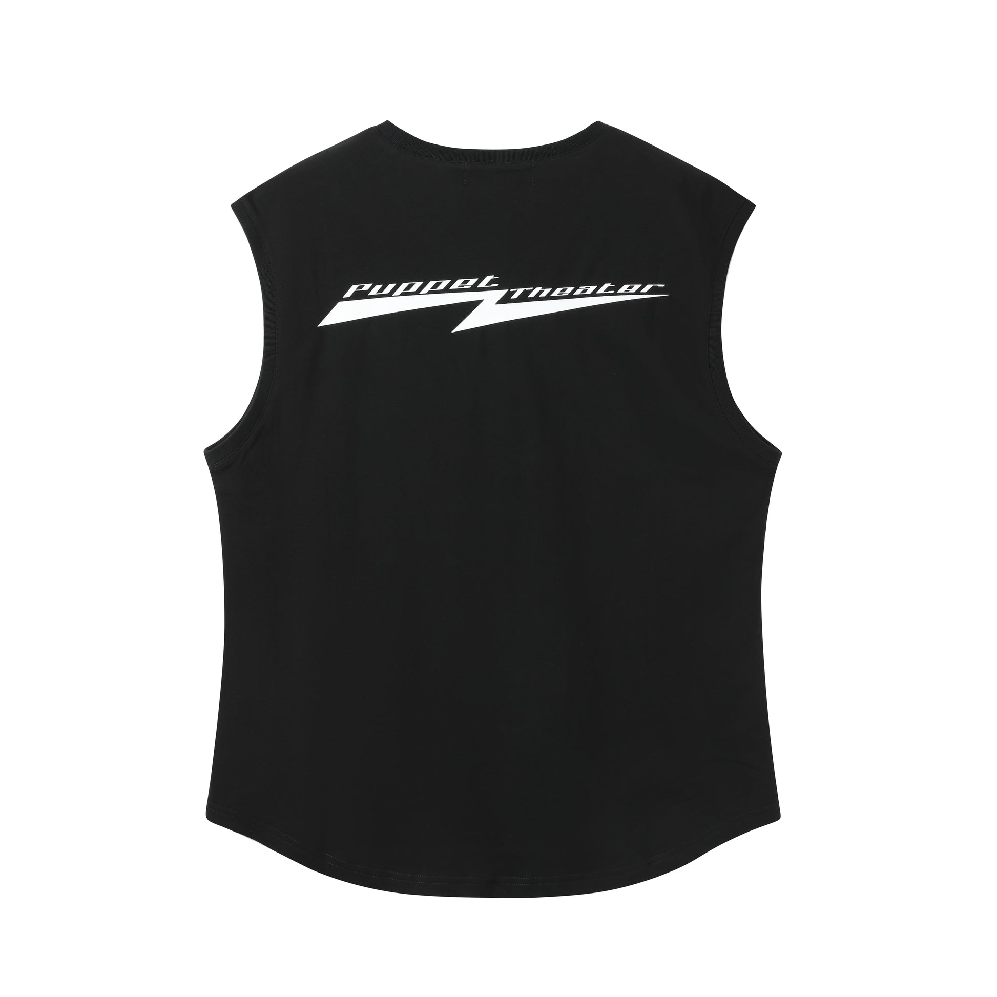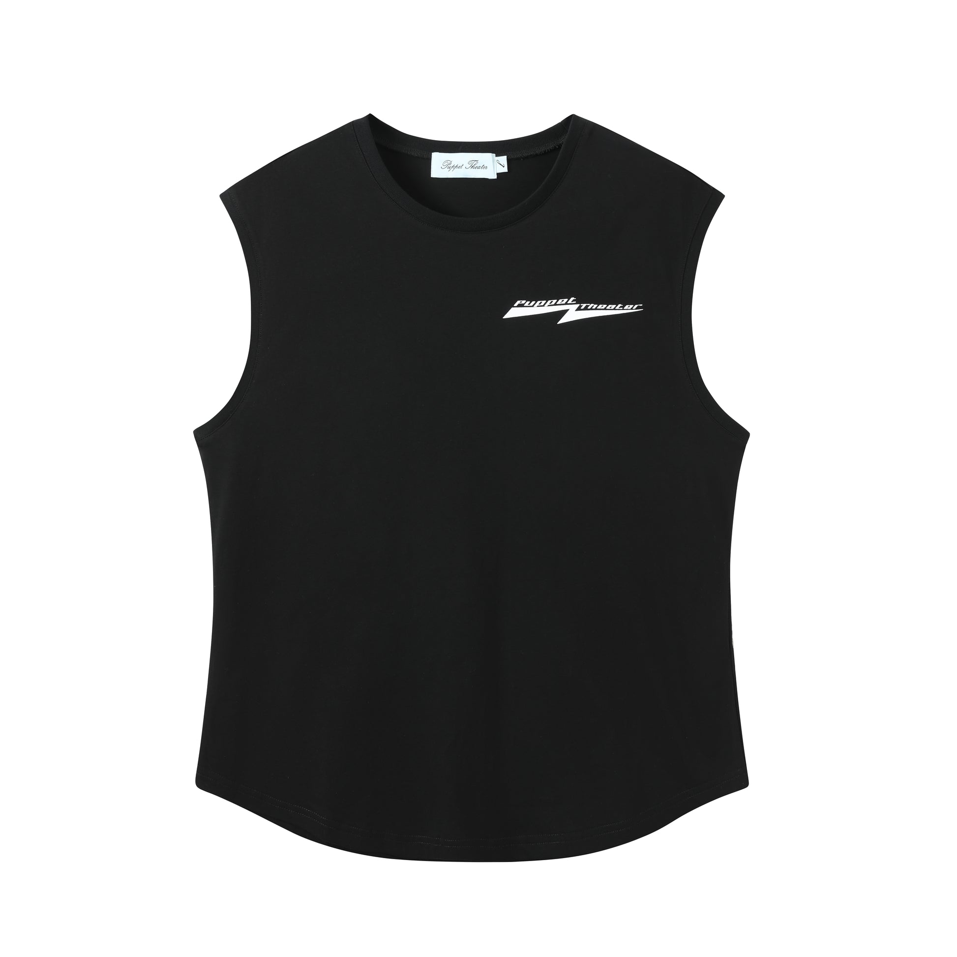 -T shirt style tank top with ribbed finished hems at neck and arm hems
