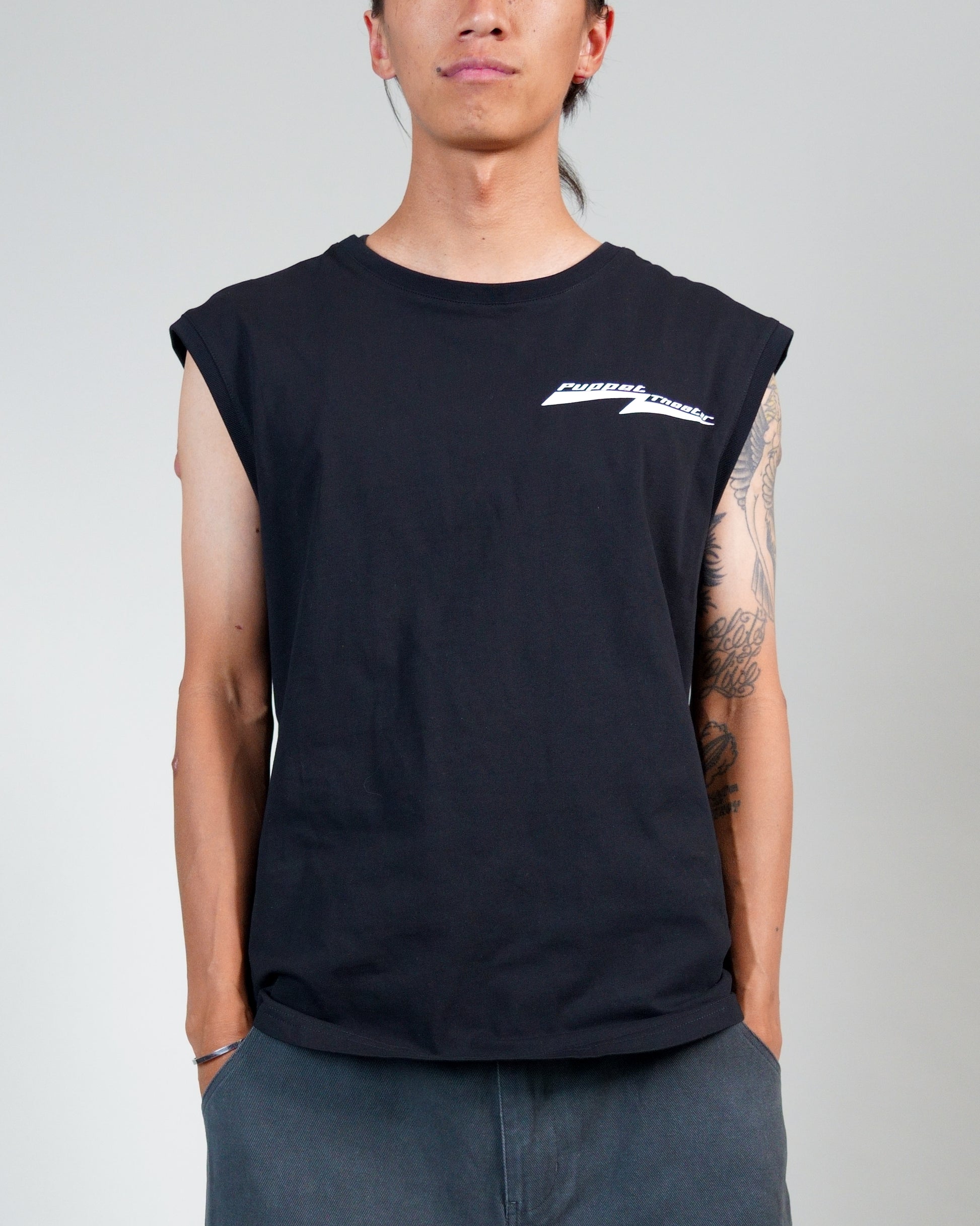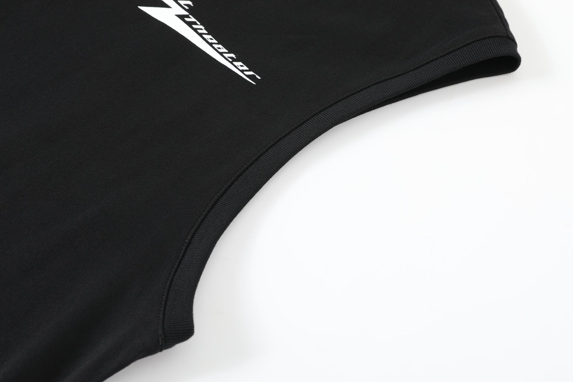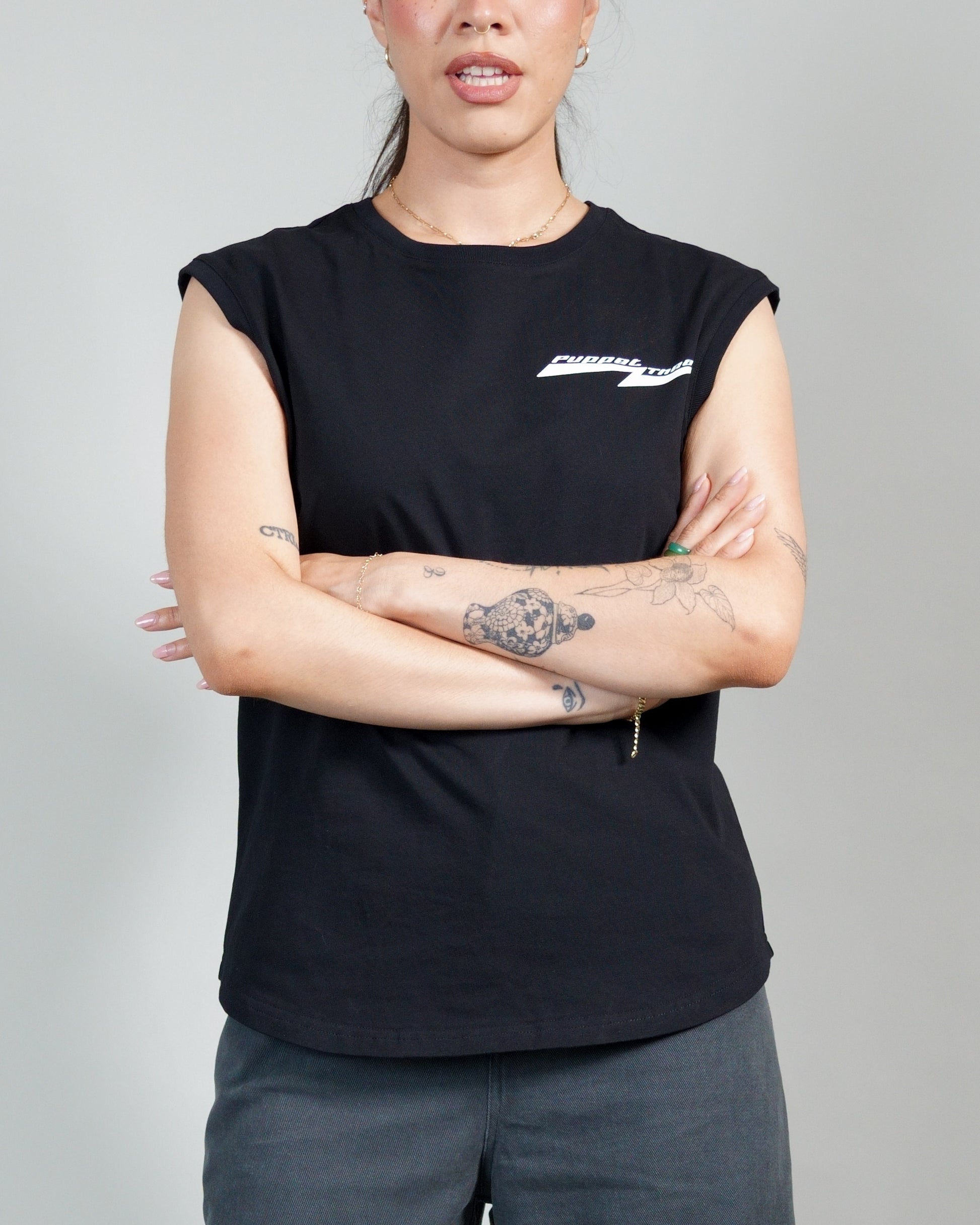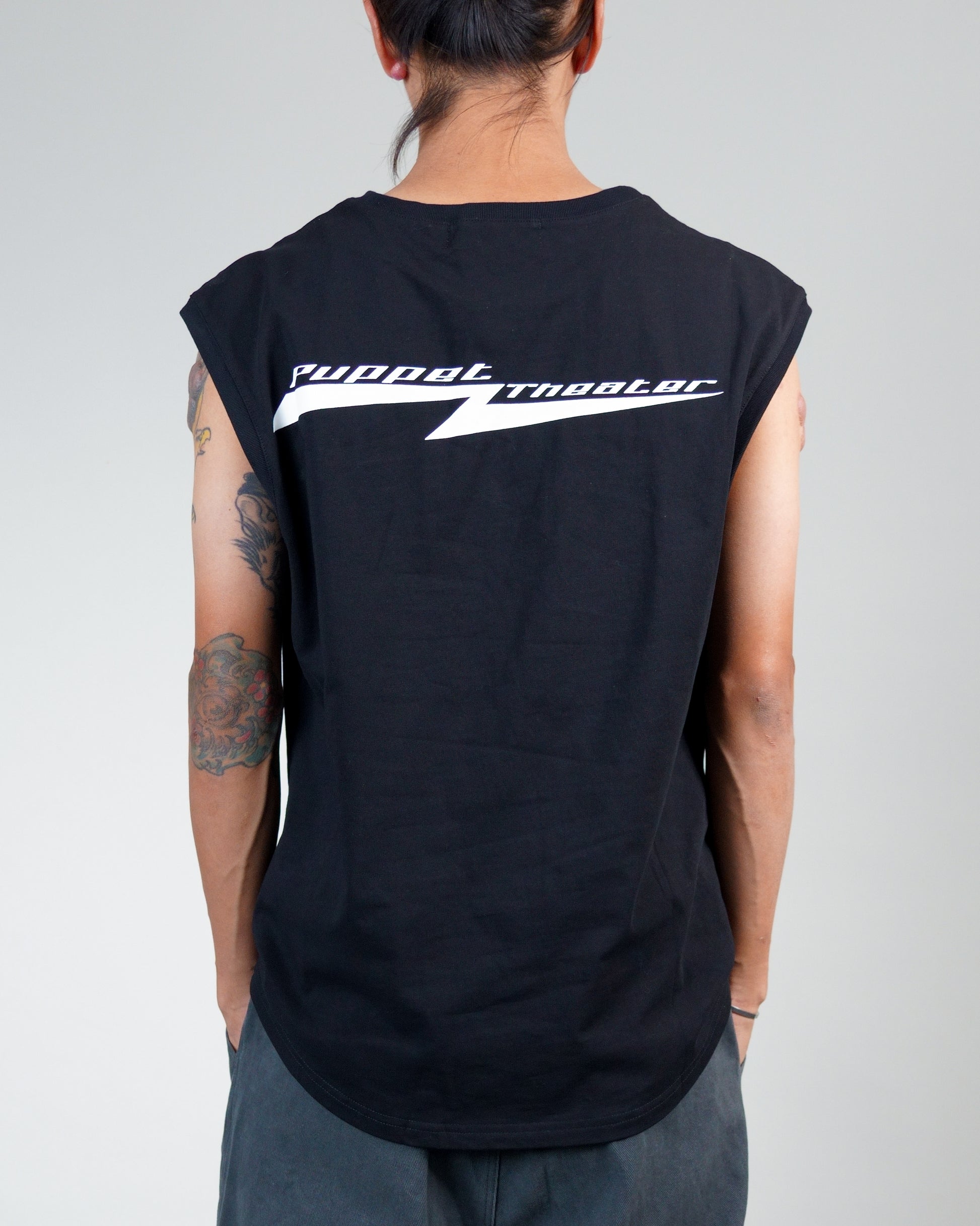 -T shirt style tank top with ribbed finished hems at neck and arm hems