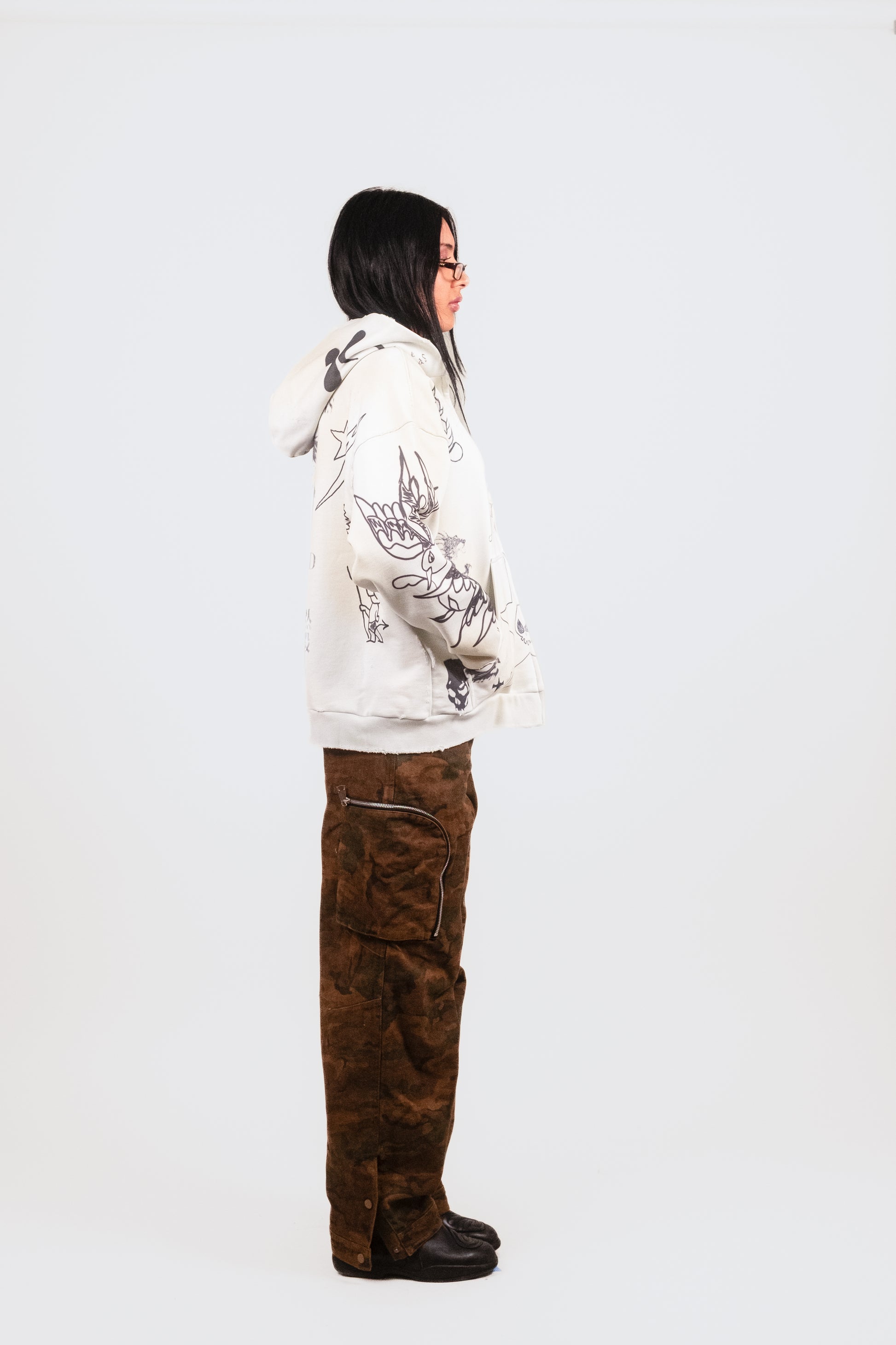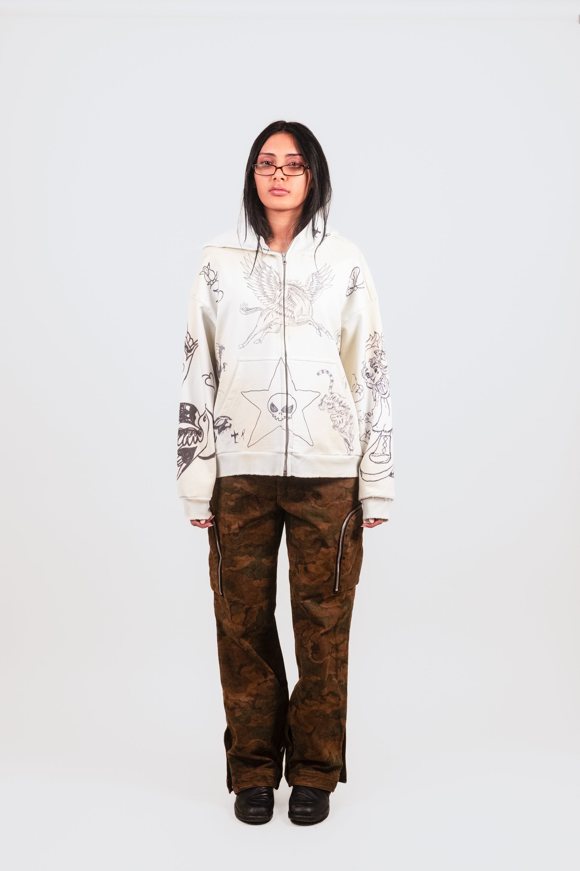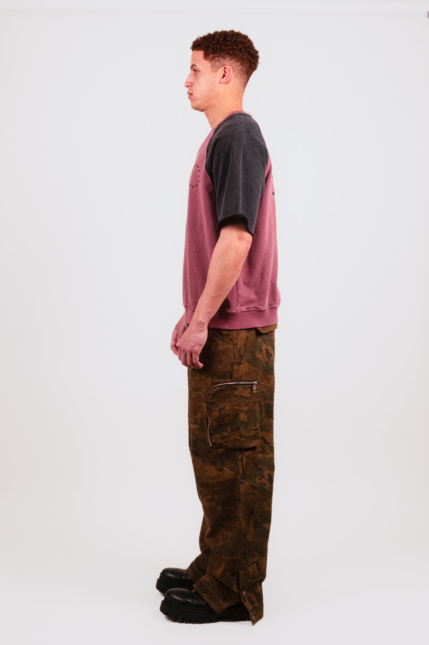 -Made from a custom heavyweight camouflage twill, inspired by classic woodland camo