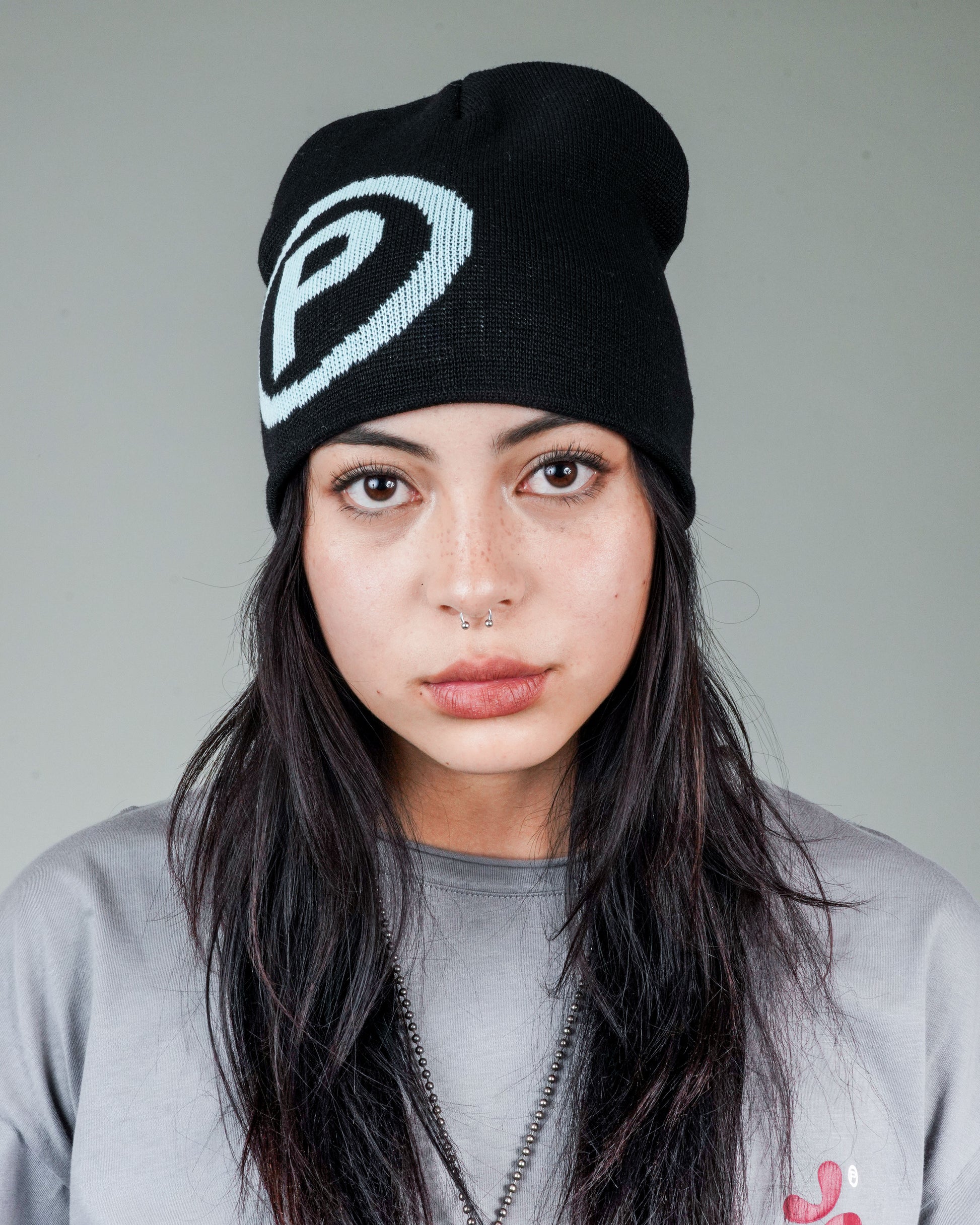 Puppet Corp Beanie in Black and Eggshell Blue