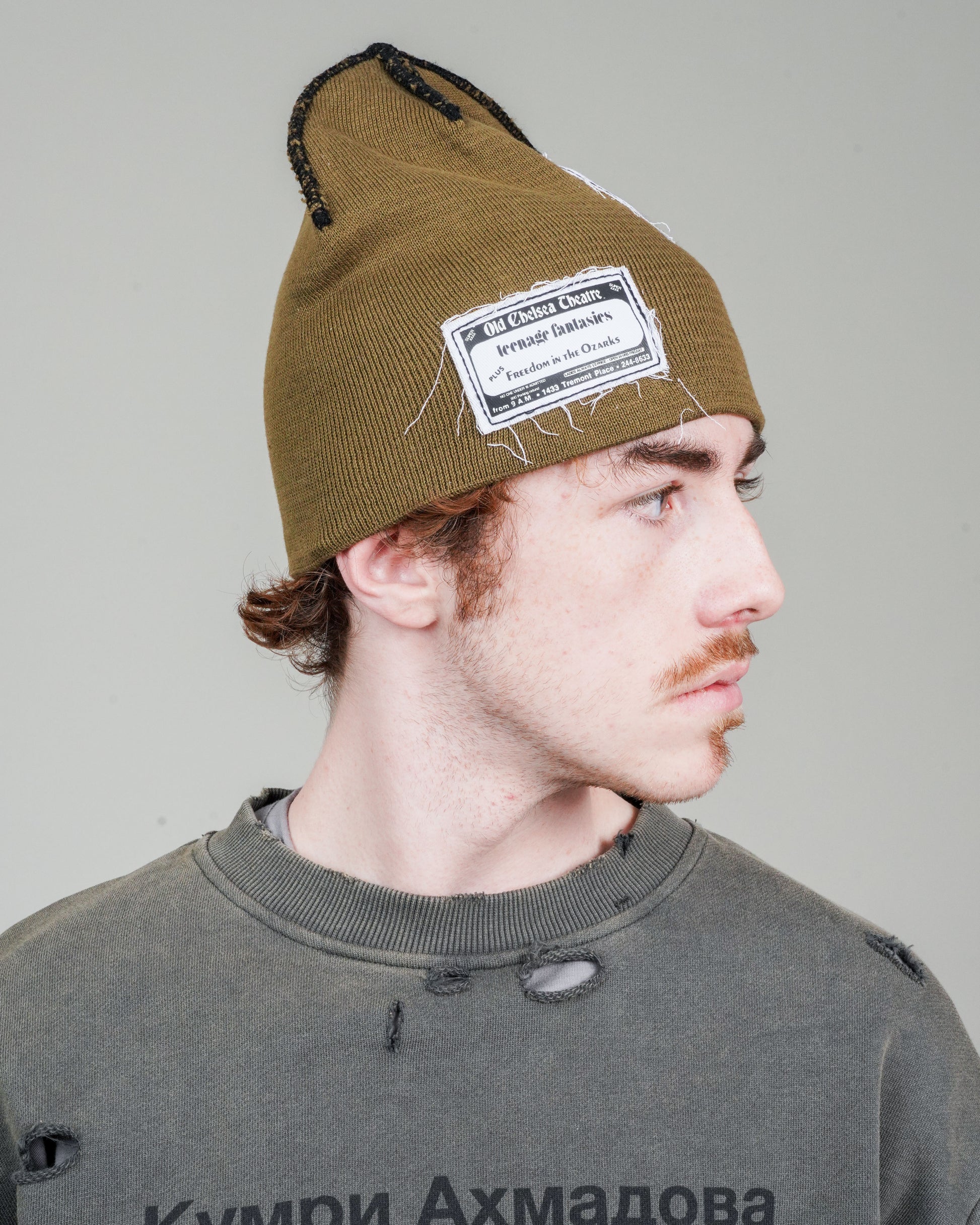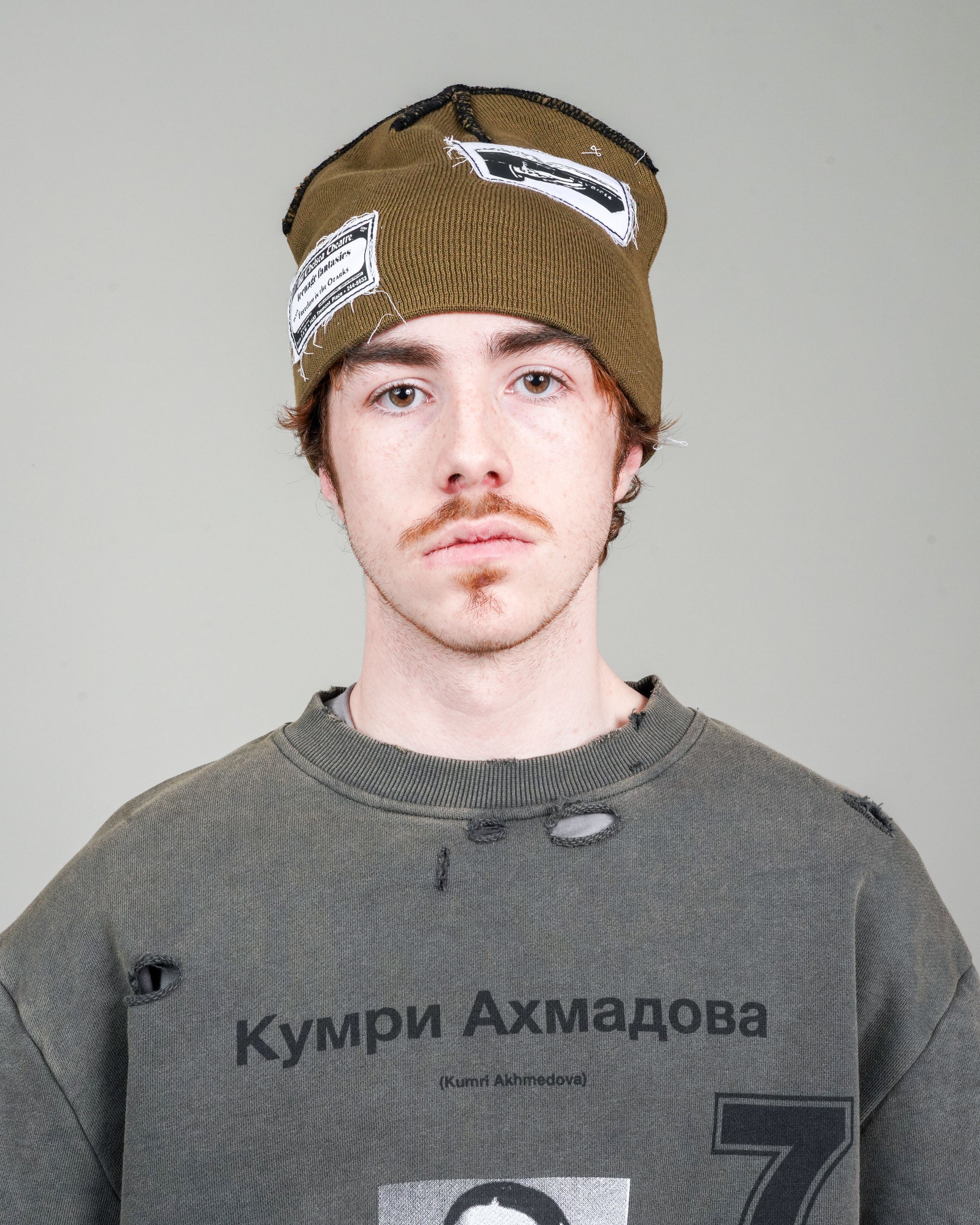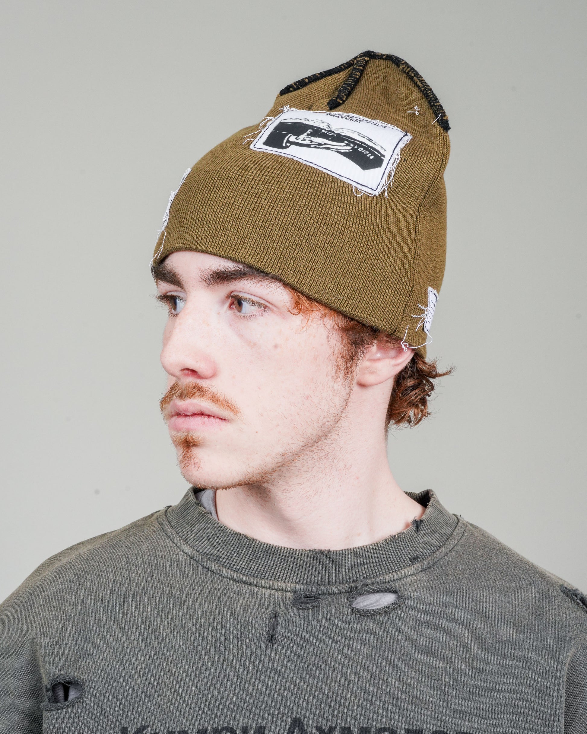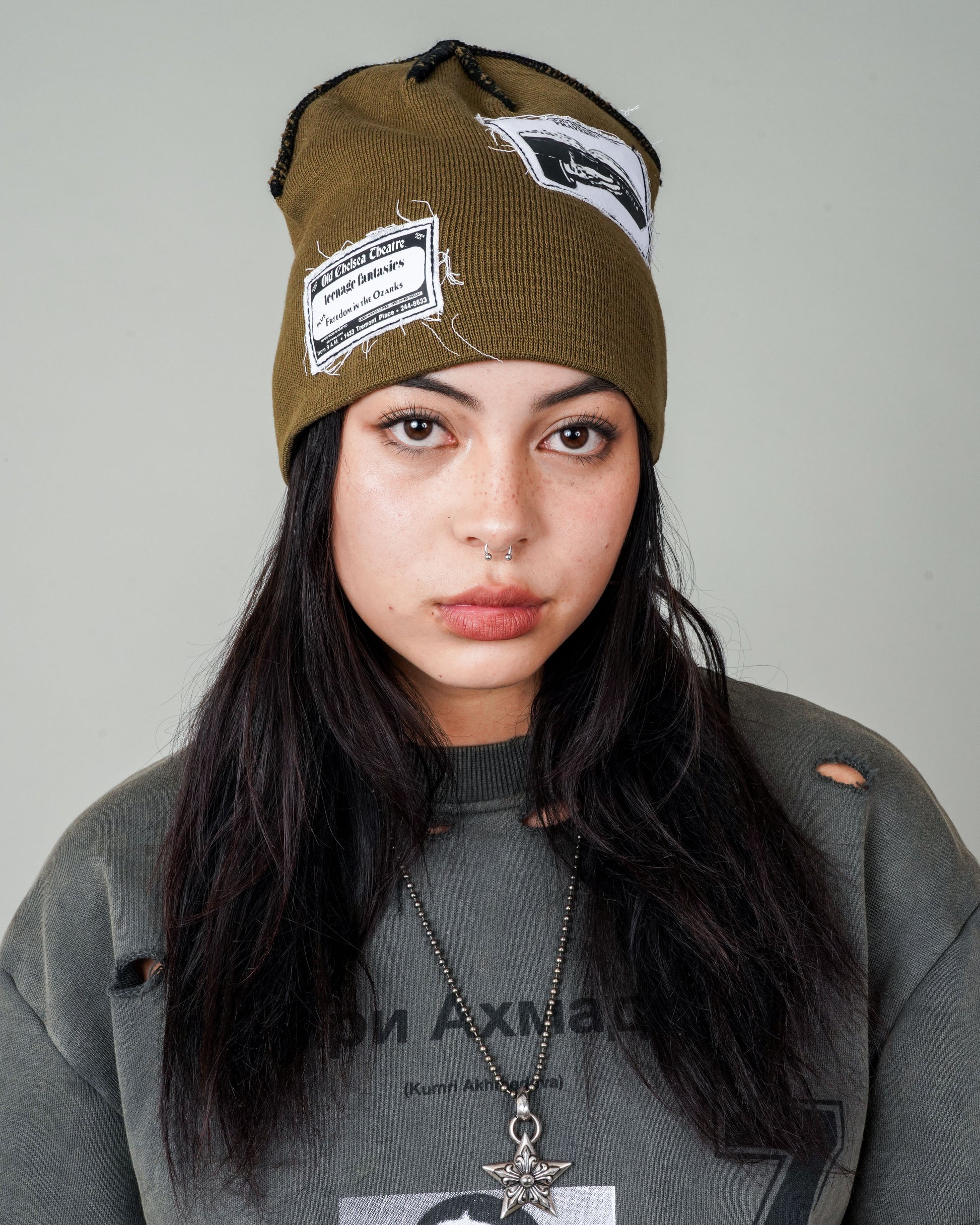 Reverse Skull Cap Beanie with Puppet Theater patches sewn on top