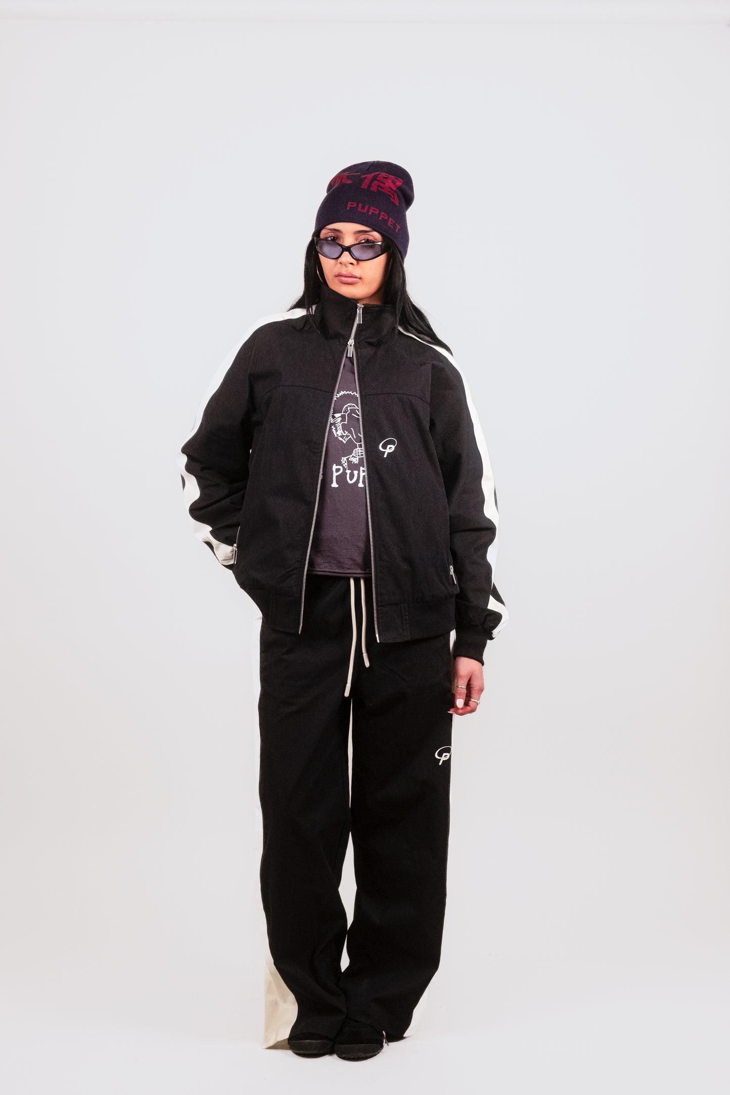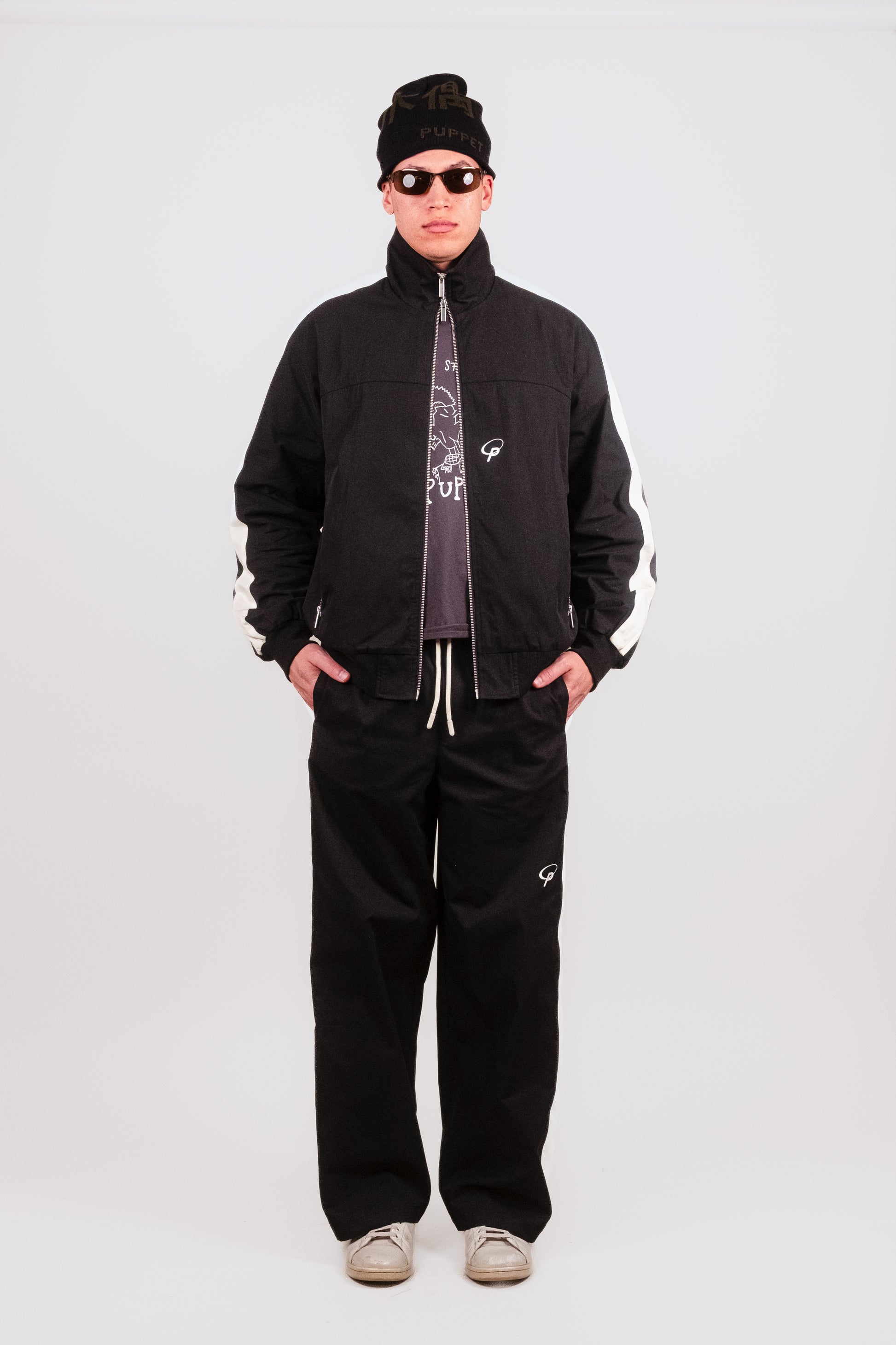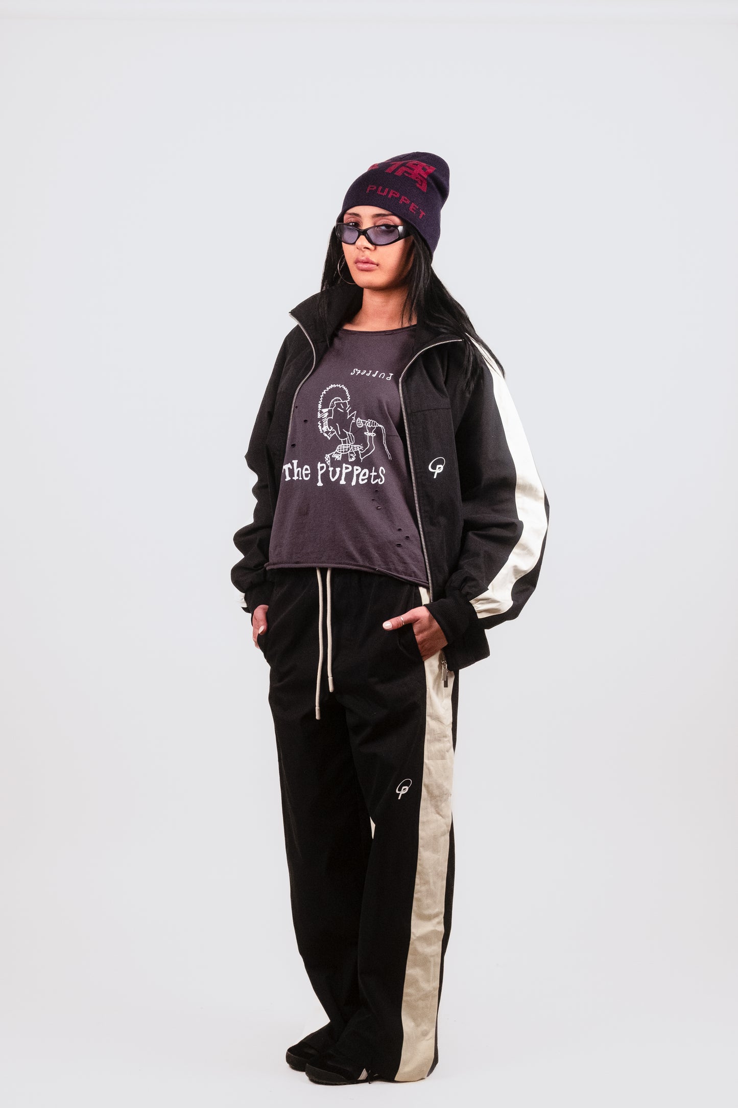 -Screen printed Puppet Theater Logo at knee